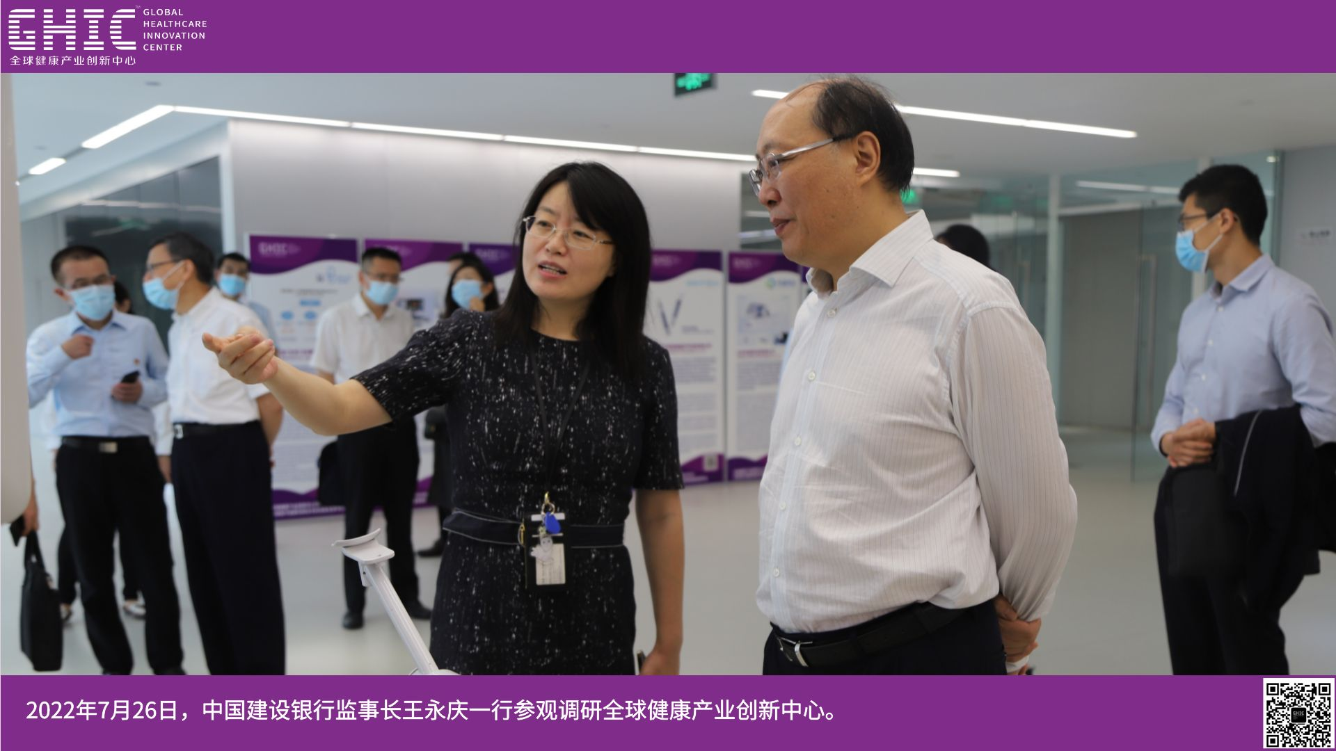 2022年7月26日,中國建設銀行監(jiān)事長王永慶一行參觀調(diào)研全球健康產(chǎn)業(yè)創(chuàng)新中心。
